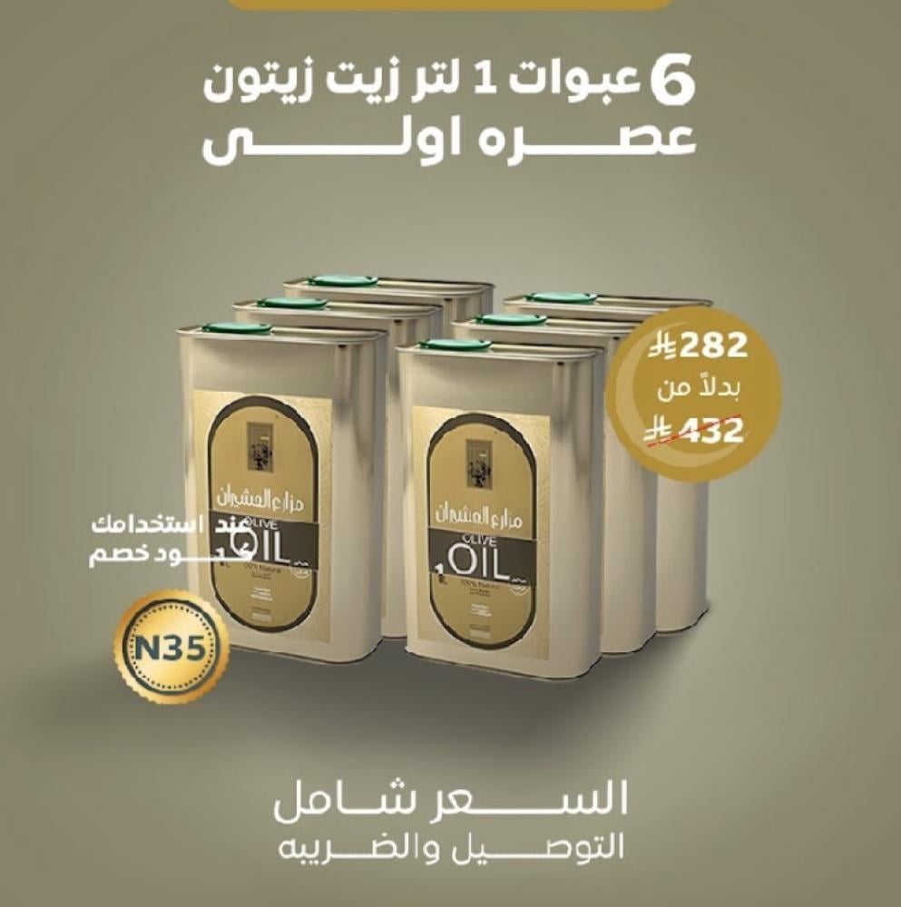 مواصفات عرض زيت زيتون ١ لتر ٦ عبوات عصرة أولى: